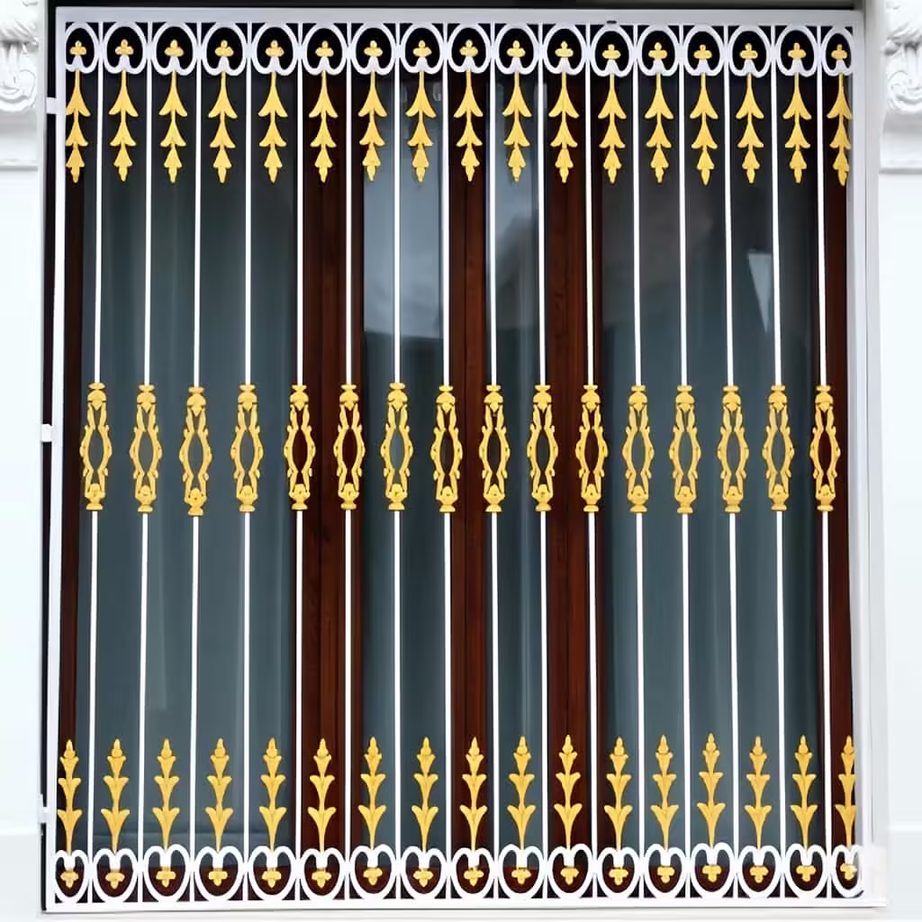 حفاظ پنجره افشان در خرم آباد + فرفورژه ترکیب آهن فرفورژه با تزئینات طلایی