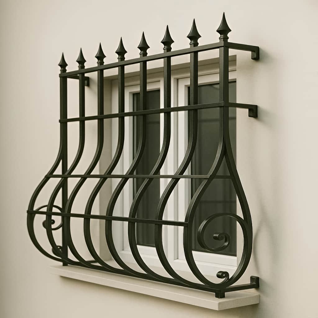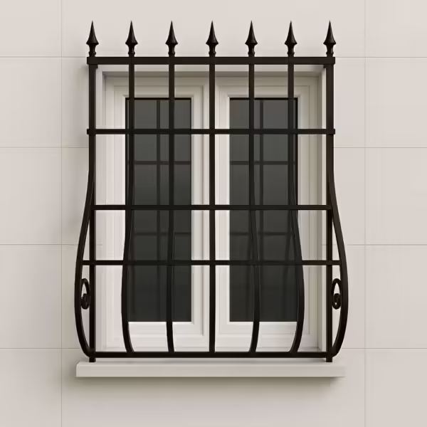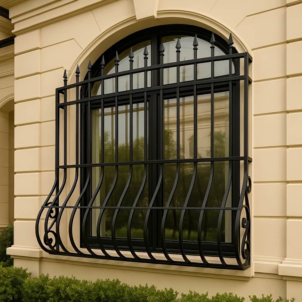 طراحی ظاهری حفاظ قوس دار در خرم آباد تلفیقی از زیبایی و امنیت است. قوسهای میانی با انحنای نرم باعث ایجاد فاصله بیشتر از پنجره شده و به عبور بهتر نور کمک میکنند. سرنیزههای فلزی در بخش بالایی، بازدارندگی چشمگیری دارند و در عین حال هماهنگی کامل با نماهای کلاسیک یا مدرن ایجاد میکنند. رنگبندی متنوع نیز امکان تطبیق با سلیقه و نمای ساختمان را فراهم میسازد.