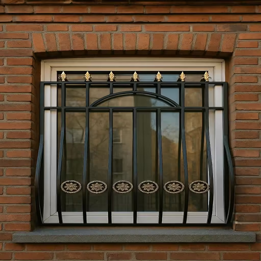 در خرم آباد، بسیاری از خانههای باغی یا ساختمانهای با نمای آجری و رومی، با نصب حفاظ موج سرنیزه دار توانستهاند علاوه بر تأمین امنیت، هویت معماری خود را نیز حفظ کنند. تزئینات گل برگ مانند در بخش پایین، از جنس چدن یا آلومینیوم دایکست آبکاری شده ساخته میشود و به زیبایی آن میافزاید. قوس مرکزی در قسمت فوقانی نیز با ایجاد تقارن، نمای متفاوتی به ساختمان میدهد. رنگآمیزی کورهای الکترواستاتیک موجب افزایش دوام حفاظ در برابر شرایط آبوهوایی متغیر در خرم آباد شده و طول عمر محصول را تضمین میکند.